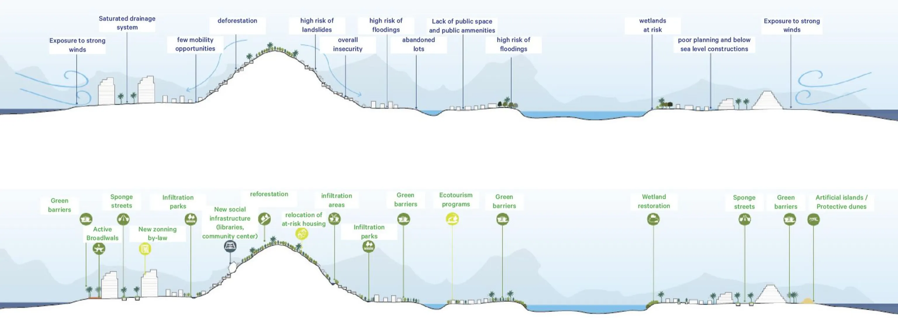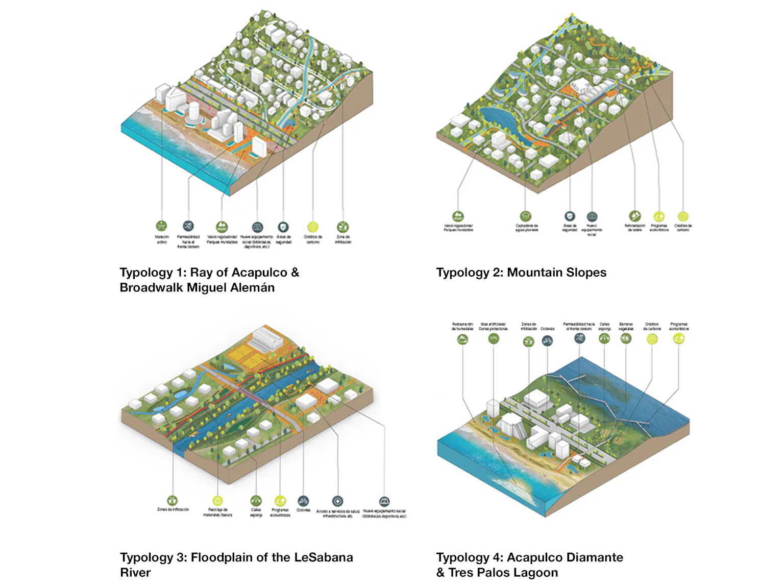 Our comprehensive resilience strategy rehabilitates the city's water system as the foundation for ecological, social, and economic recovery. Our competition proposal for the Mexican Urbanists Association emphasises nature-based solutions and community participation to address the growing threats of climate change while strengthening this iconic tourist destination.