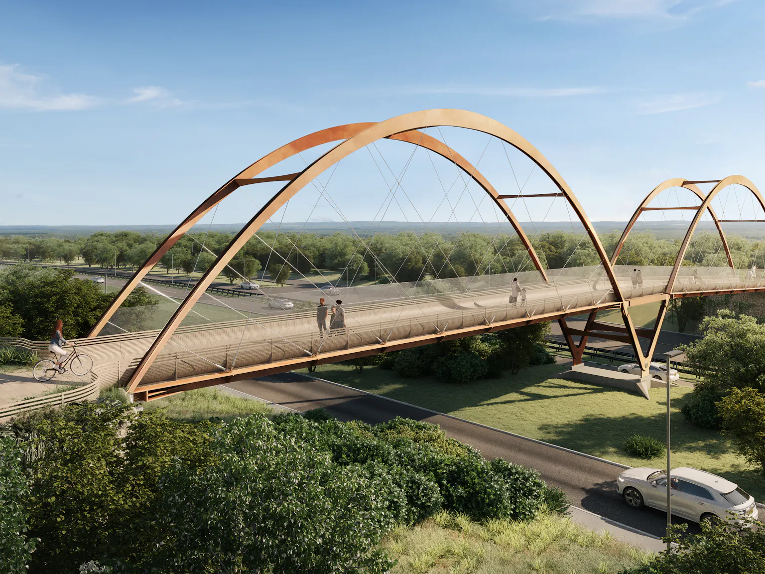 Sustainability is at the heart of the design, with active travel encouraged alongside the use of sustainable materials. This is combined with carefully placed piers which touch the ground lightly to minimise the ecological impact of the bridge.