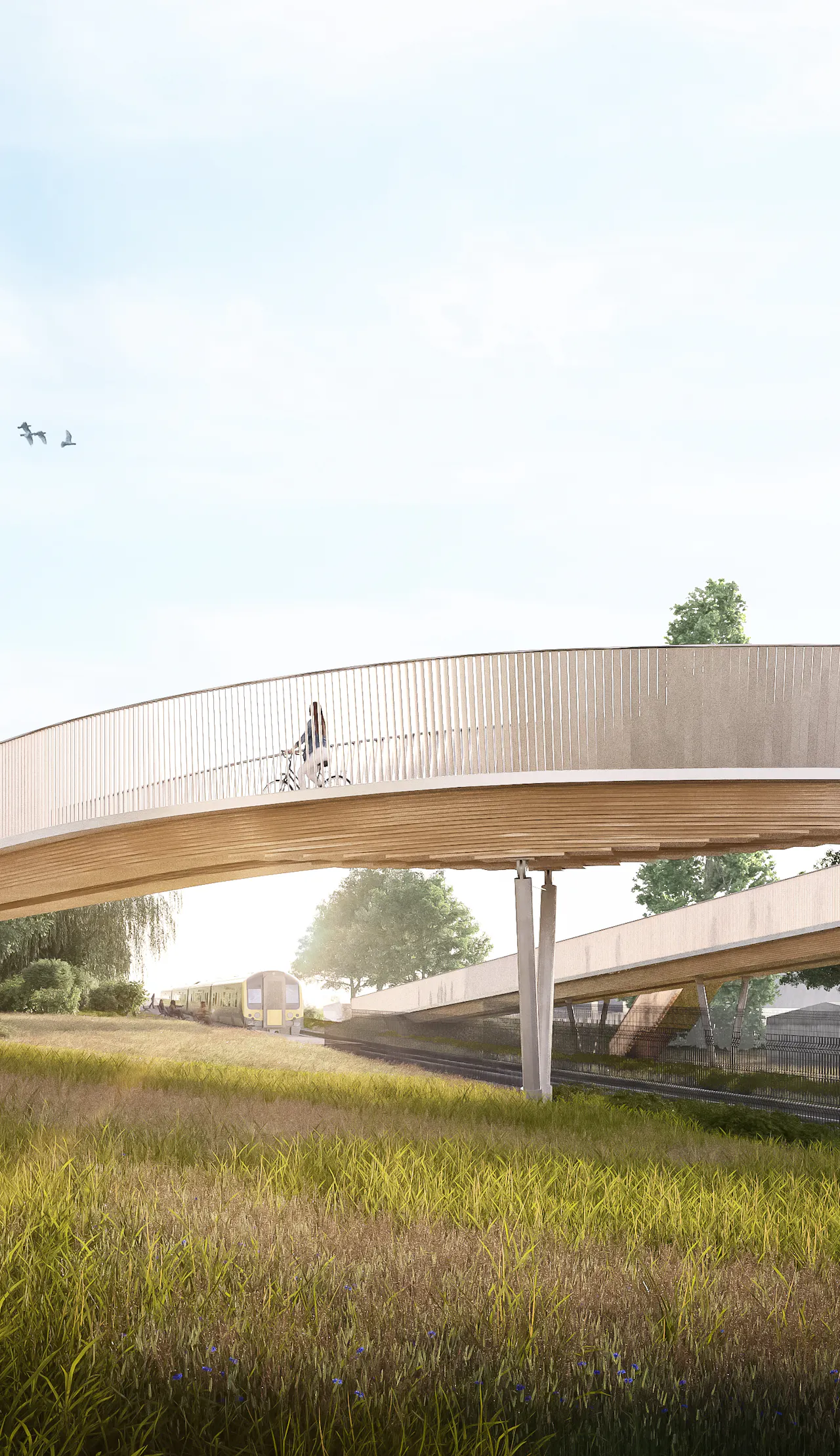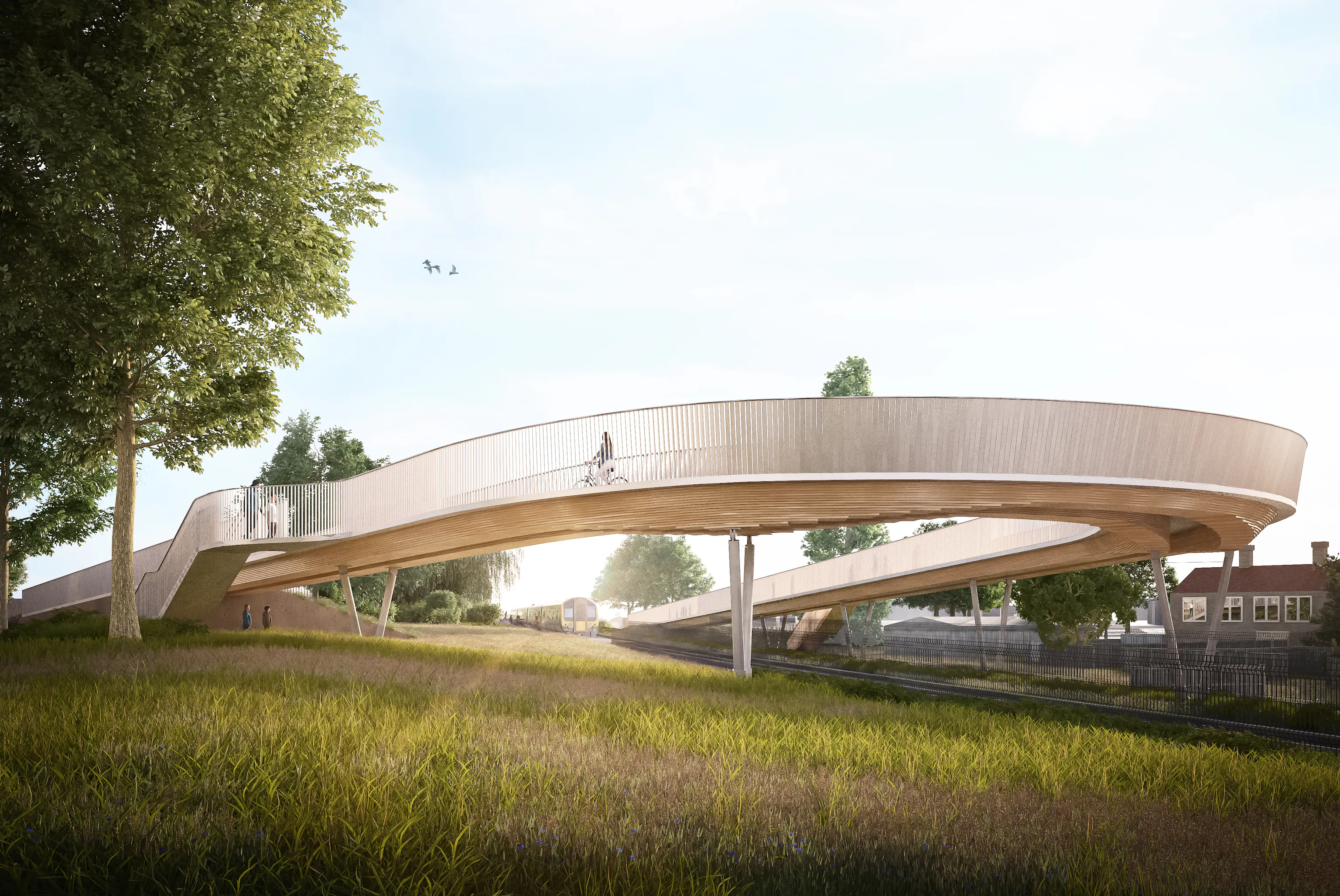 Our design uses a low-maintenance laminated timber deck which would be a first over a UK railway; it contributes to the unique character of the bridge and integrates the proposal with this sensitive setting.