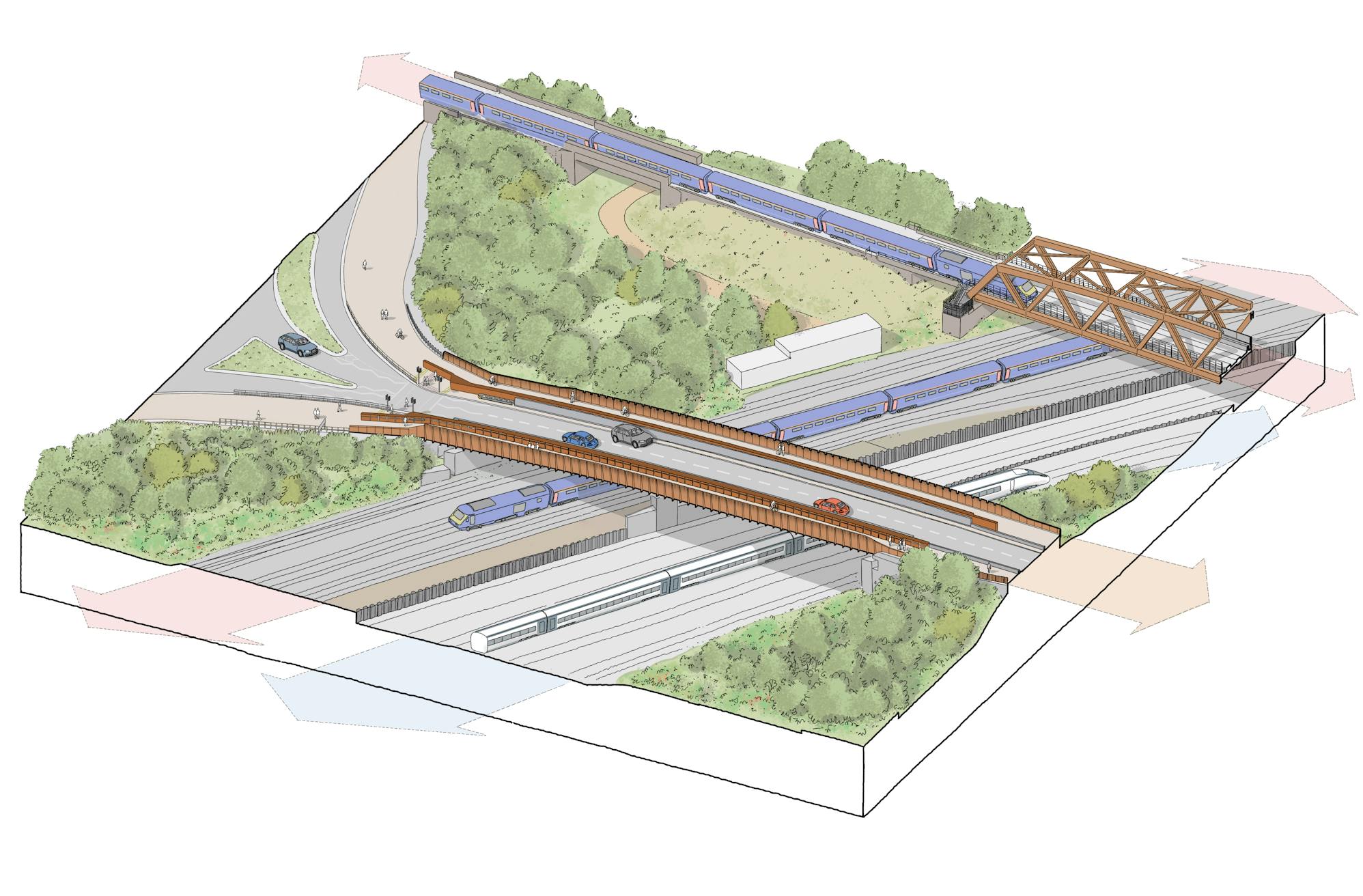 Prefabrication was maximised using an offline construction methodology, allowing bridges to be constructed alongside the existing structures. This minimises disruption to the local community, as the demolition of the existing structures does not need to begin until the new bridges are in place.