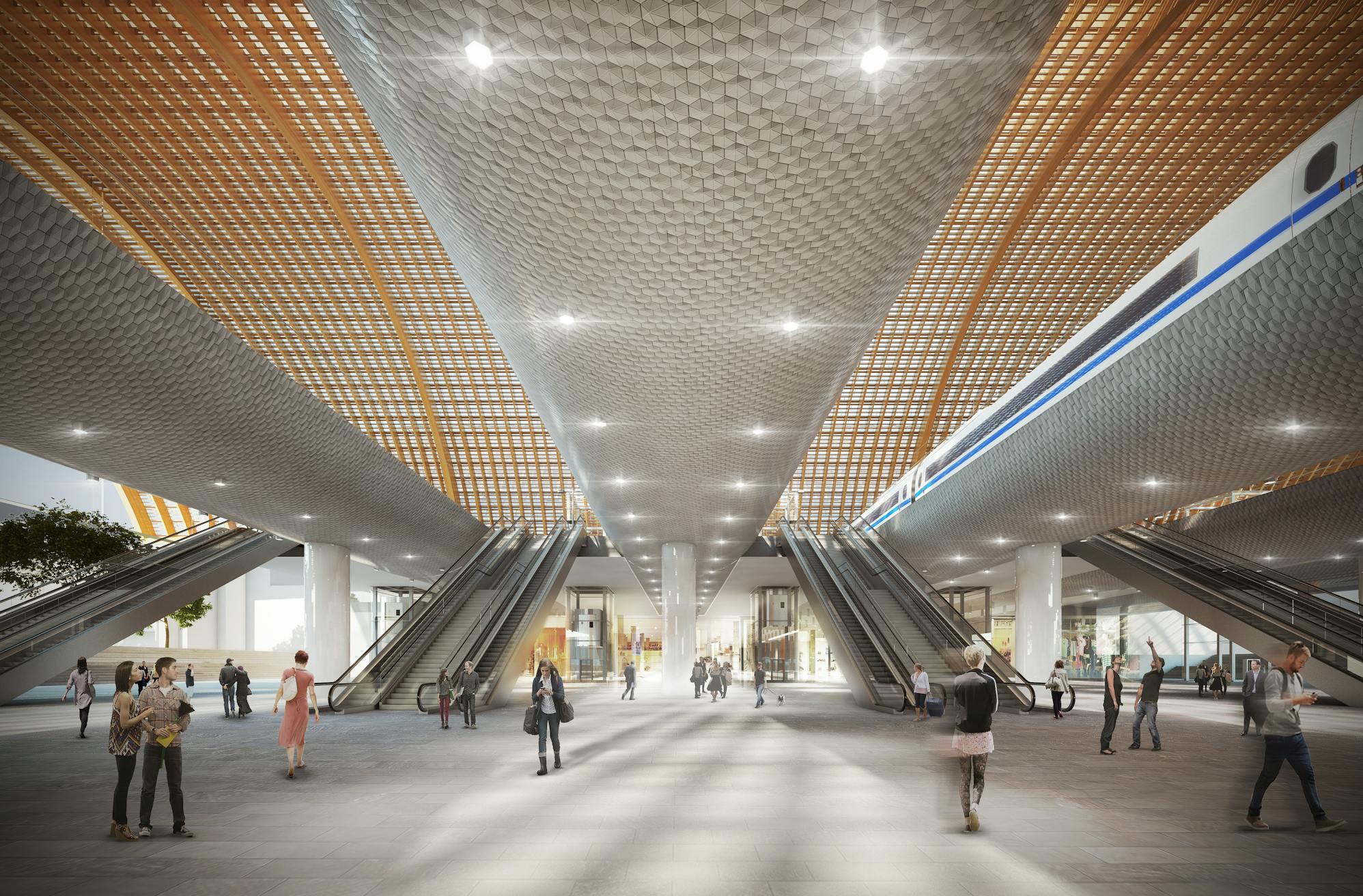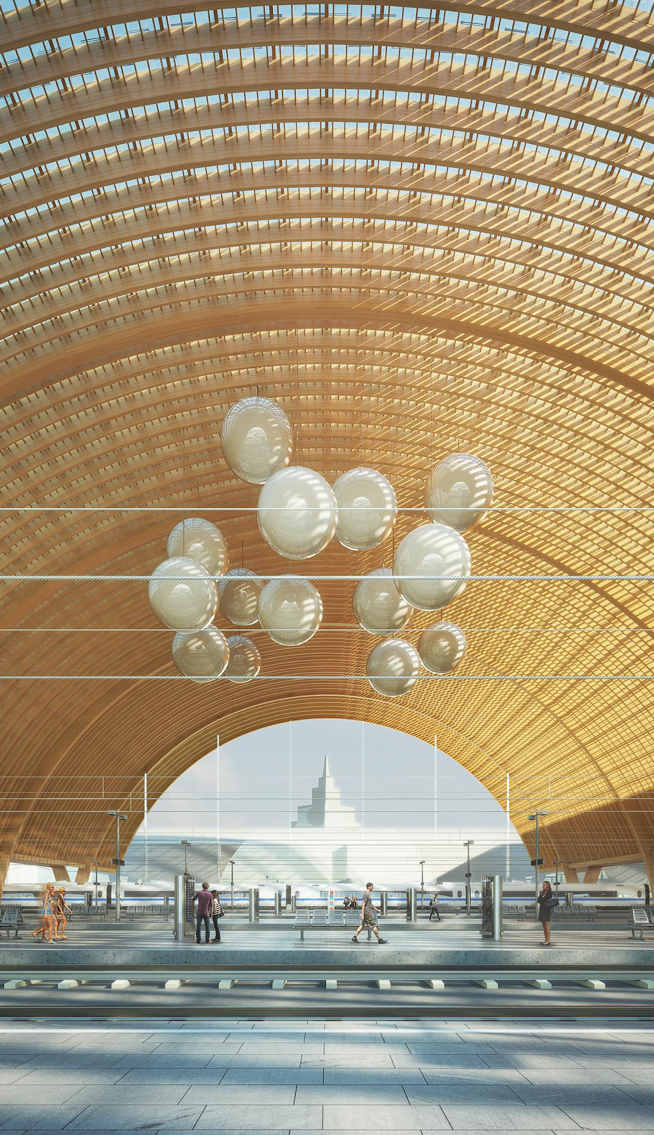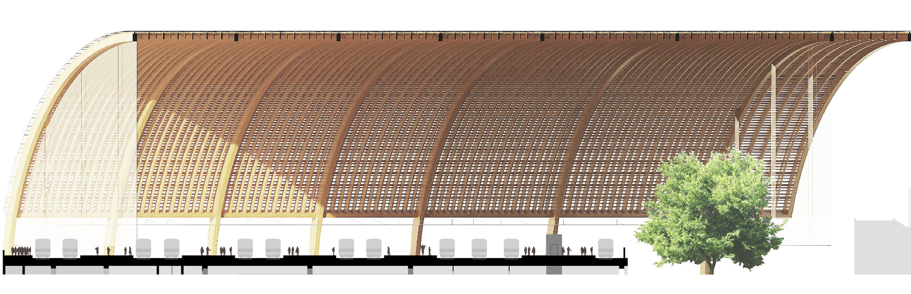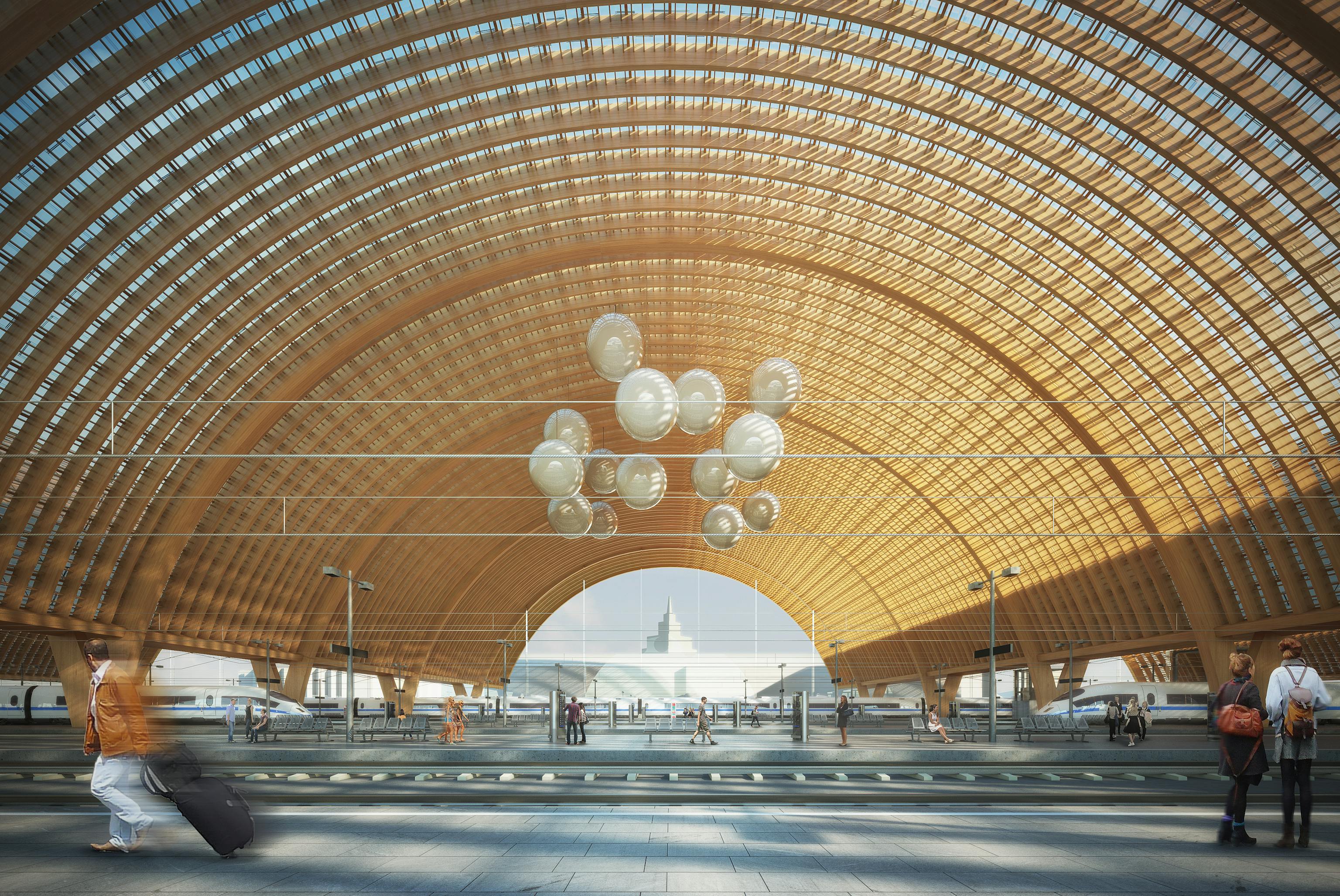 As part of the Riga Central Station renovation, we designed a large roof enclosure that echoes both the design of the historic Daugava railway bridge and the Central Market Hall roofs that border the site. The roof vaults are a series of timber arch ribs made from composite glued-laminated timber sections and engineered timber components. Lighting, information systems and signage are suspended from the roof structure allowing maximum platform space for passengers.